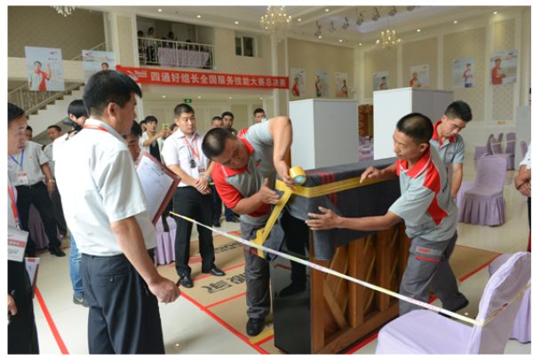 2016年9月21日,由北京四通搬家有限公司舉辦的全國員工技能大賽在北京藍(lán)調(diào)莊園舉行。本次大賽首先從四通搬家全國18個(gè)分公司內(nèi)部組織開展選拔賽,然后從每個(gè)公司中選拔出業(yè)務(wù)精、服務(wù)的員工來京參加比賽,選手共有18名,每3人一組,分為6組進(jìn)行多輪比賽,分別決出冠亞季軍。經(jīng)過幾輪激烈的比拼,北京東區(qū)分公司楊新武贏得冠軍并獲得20000元獎金以及價(jià)值2000元的父母感恩禮品一份;亞軍獲得者來自福州公司沈星武同時(shí)獲得8000元獎金以及價(jià)值1000元的父母感恩禮品一份;季軍由南京公司劉泳斬獲,并奪得5000元獎金。