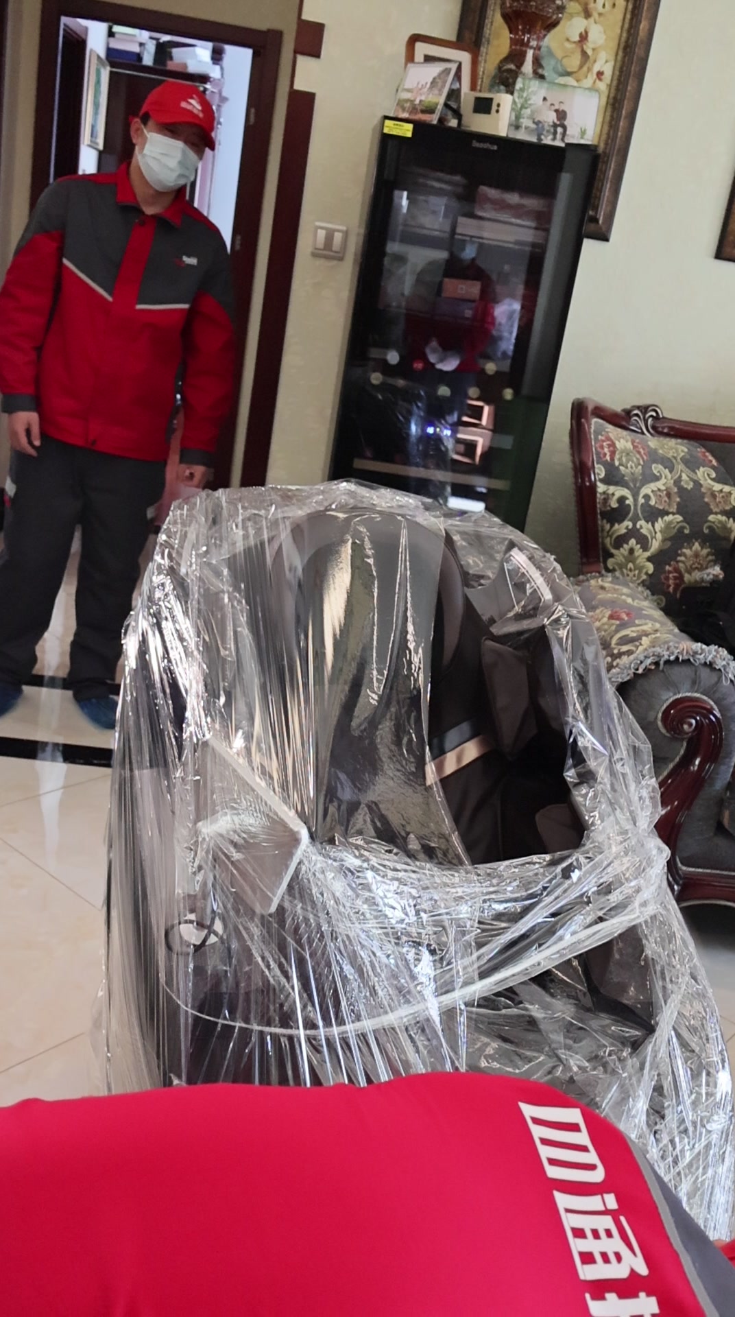 打包材料方面,建議使用毛毯、氣泡膜、硬紙板、膠帶等。先用纏繞膜簡單包裹按摩椅,防止被擦傷;再用硬紙板剪切出硬質(zhì)護角,保護按摩椅的邊邊角角;用氣泡膜仔細打包,并貼上易碎標簽,提醒搬運人員注意。
