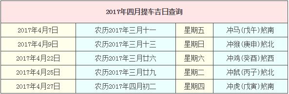 2017年4月提車吉日查詢,2017年4月提車吉日一覽表